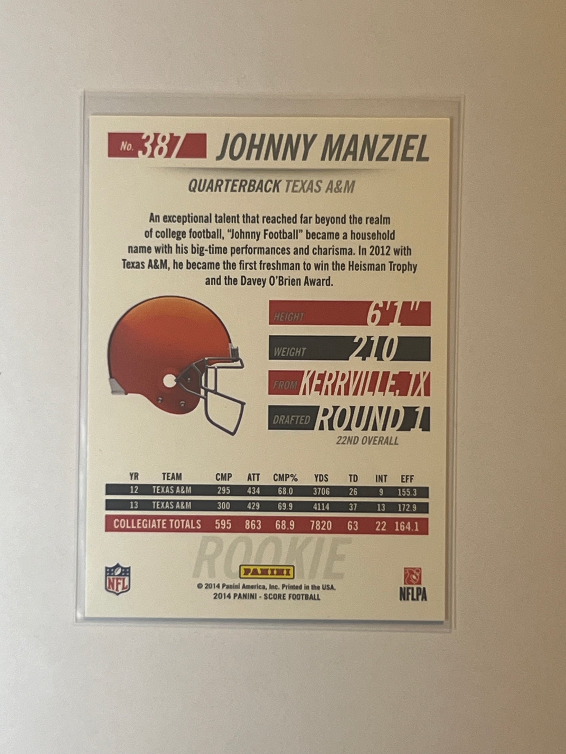 2014 SCORE 387a Johnny Manziel ROOKIE CARD CLEVELAND BROWNS FOOTBALL CARD