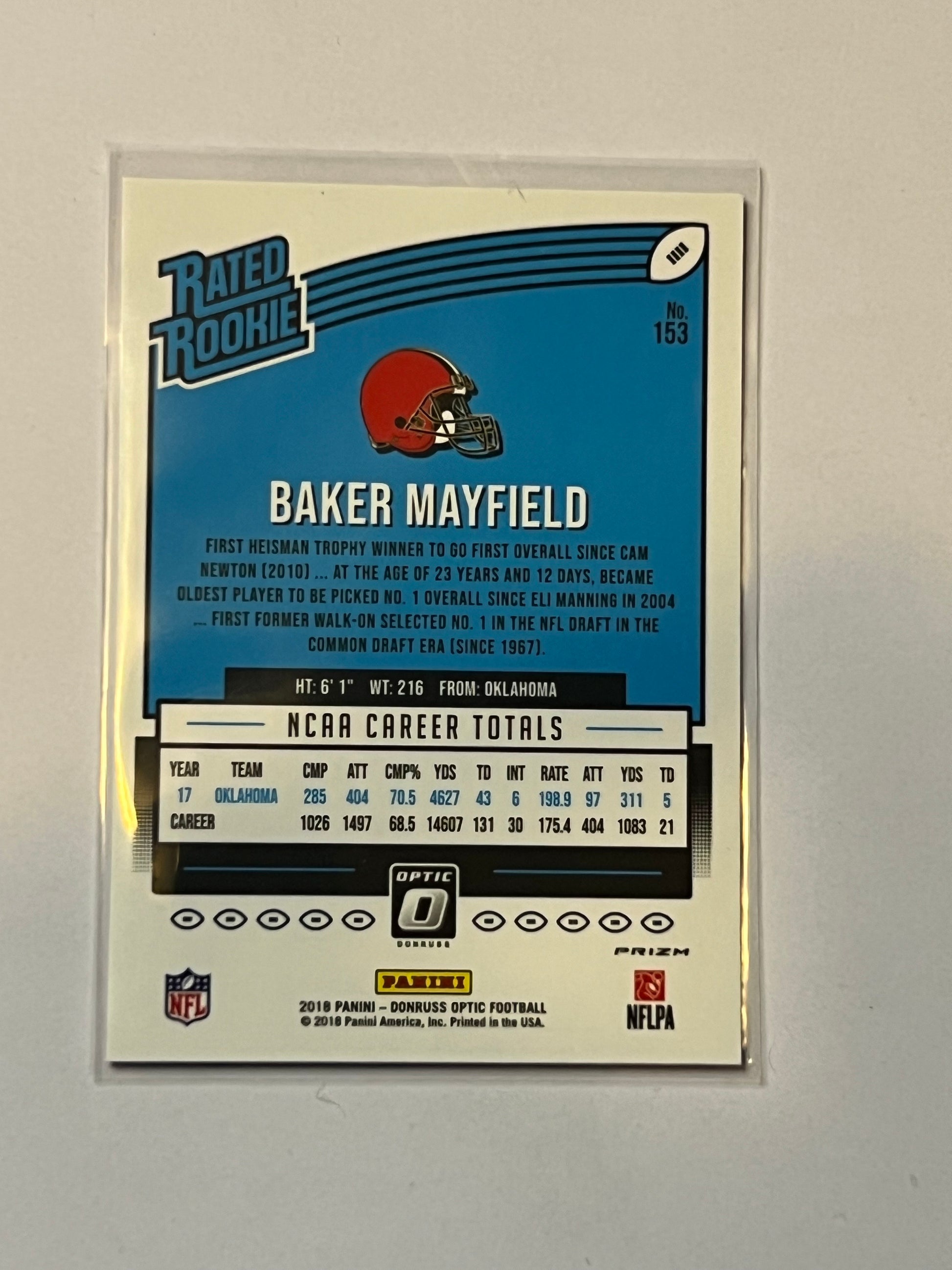 2018 DONRUSS OPTIC Baker Mayfield PINK PRISM ROOKIE CARD #153